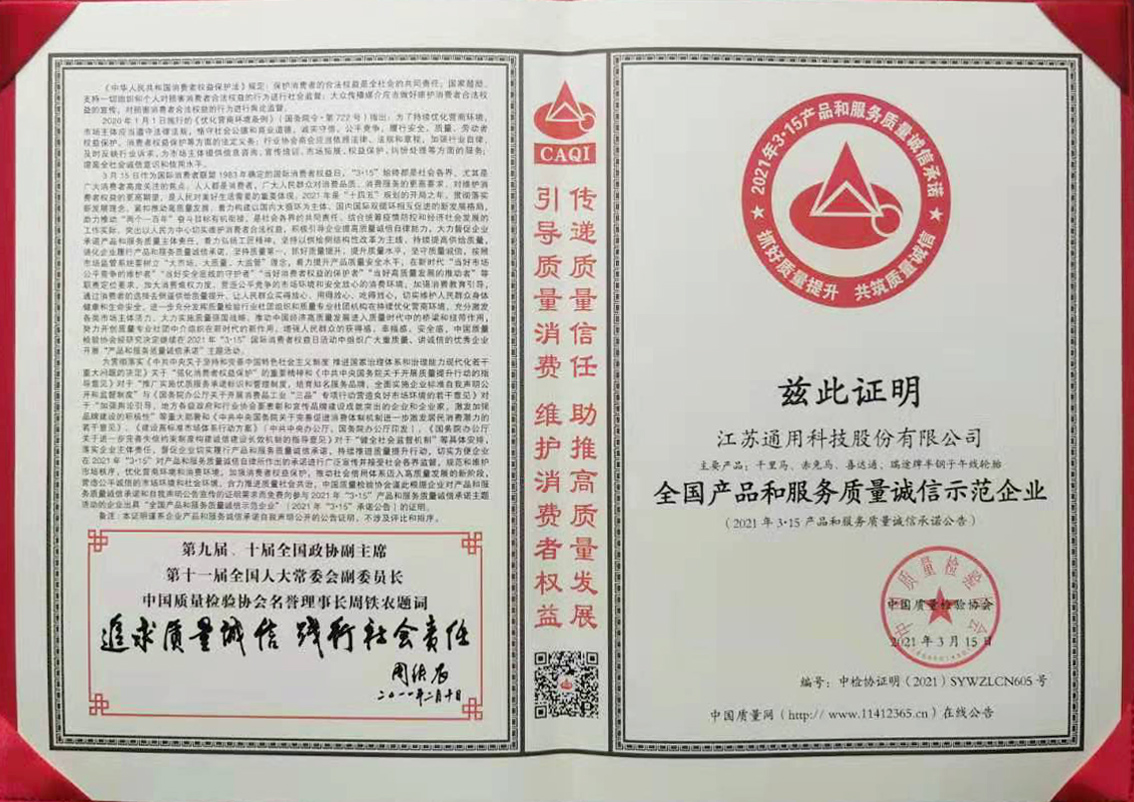 近日,在由中国质量检验协会主办的2021年3·15国际消费者权益日产品和服务质量诚信承诺主题活动中,通用股份凭借优质的产品性能、稳