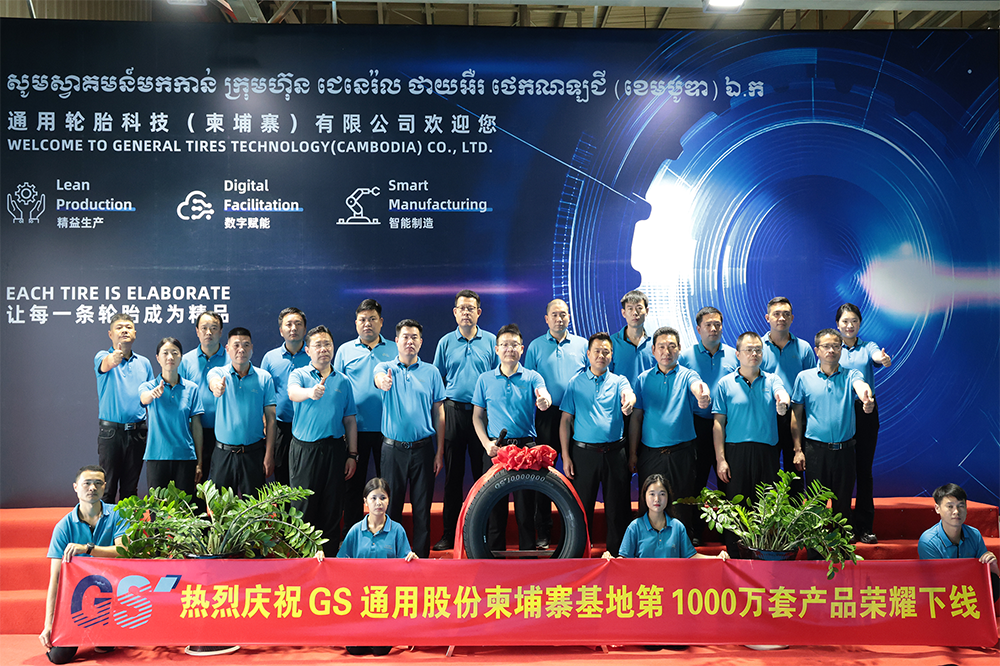 5月6日,通用股份柬埔寨基地迎来历史性时刻。在半钢硫化车间内,千里马品牌275 55R20 PREVAIL H T轮胎缓缓诞生,标志着基地第1000万条轮
