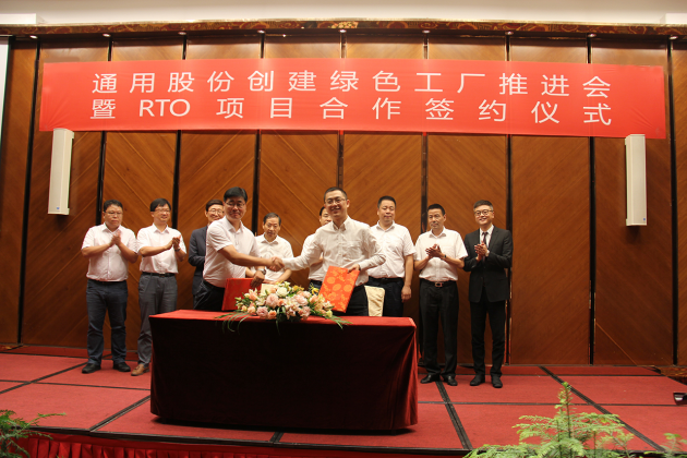 8月29日,通用股份创建绿色工厂推进会暨RTO项目合作签约仪式举行,通用股份与韩国大洋环境株式会社正式签署项目合作协议,双方就RTO