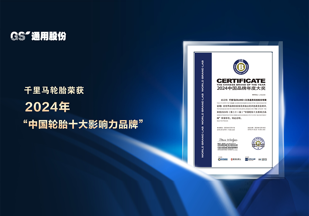 12月18日,通用股份旗下千里马轮胎连续六年荣获中国轮胎十大影响力品牌称号。这项殊荣来自2024年第二十一届中国品牌年度大奖评选,该奖项由