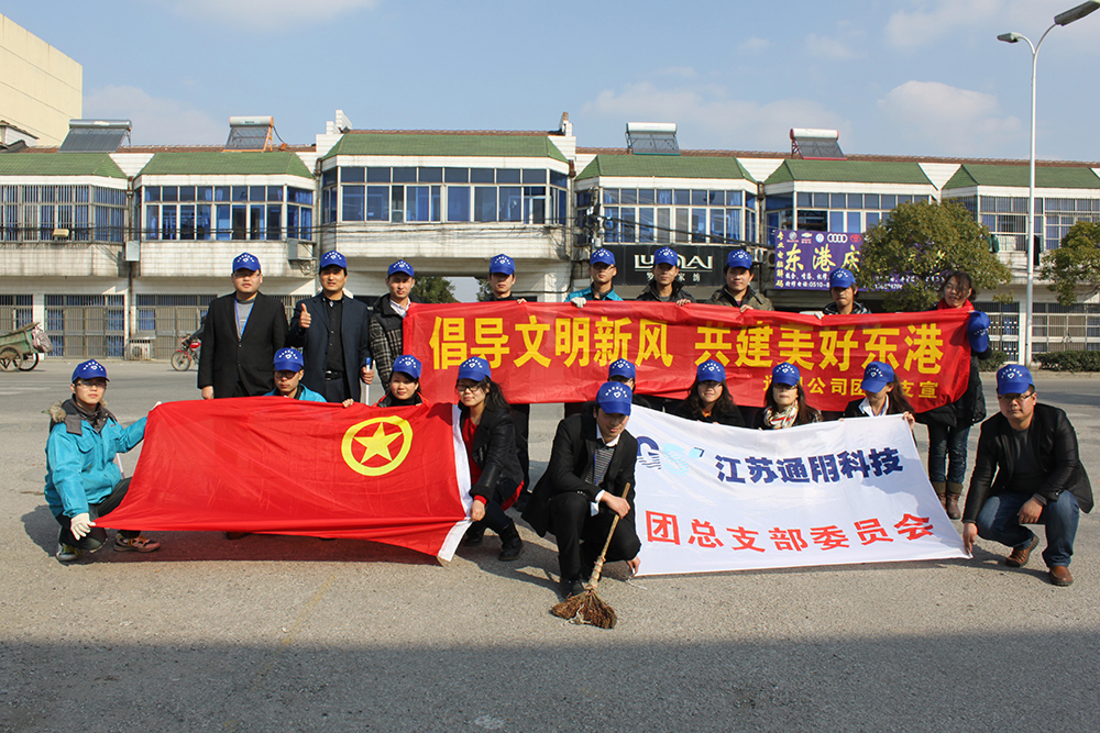2012年12月11日中午,通用股份团总支组织二十多名青年‘环保卫士’利用午休时间开展“倡导文明建设,共建美丽东港”活动。‘环保卫士们’从