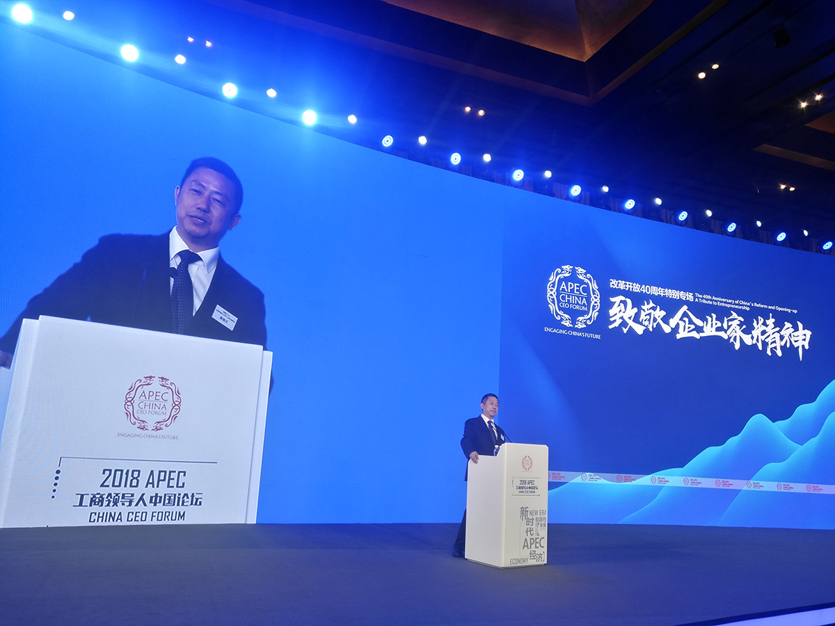 7月7日,中国民间商会副会长、APEC中国工商理事会副主席、红豆集团董事局主席兼CEO周海江在北京出席2018 APEC工商领导人中国论坛,