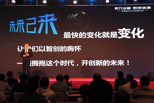 在无锡会场,通用股份总经理王晓军对未来一年的市场形势、公司战略规划与在座经销商做了详细的分析。他强调,2018年是公司变革发展年,通用股份将以自主品牌促质量变革、以卓越管理促效率变革,以自主创新促动力变革,提质增效,加快规模发展,把握中国轮胎行业新时代的发展机遇,开创新的辉煌!