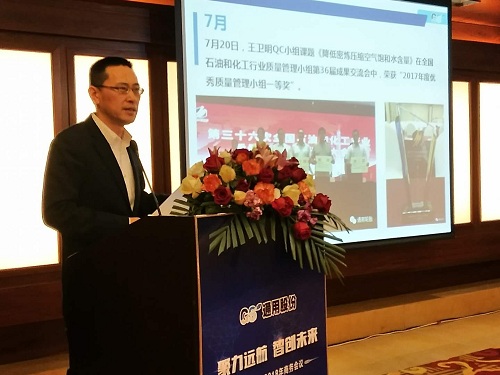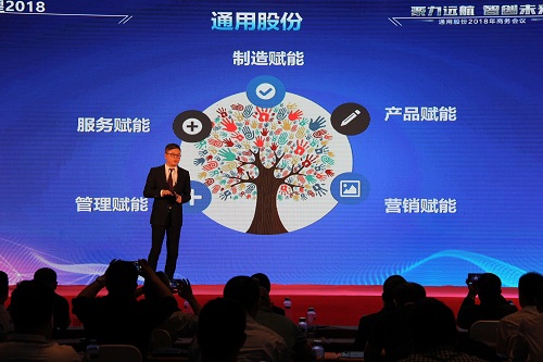通用股份董事长顾萃先生在会议上作了“赋能2018”的重要主题演讲。回首2017,顾董对宏观经济和行业情况进行了生动解读。展望2018,顾董以“大、新、快、链”四个字阐述了当下时代的发展趋势,探讨了智能化以及创新思维对未来工业和生活的深远影响。通用股份将从“制造、产品、营销、管理、服务”五大赋能促进变革发展,抢占先发优势,智能制造升级,全球化视野布局,全方位提高效率,做最好的自己。