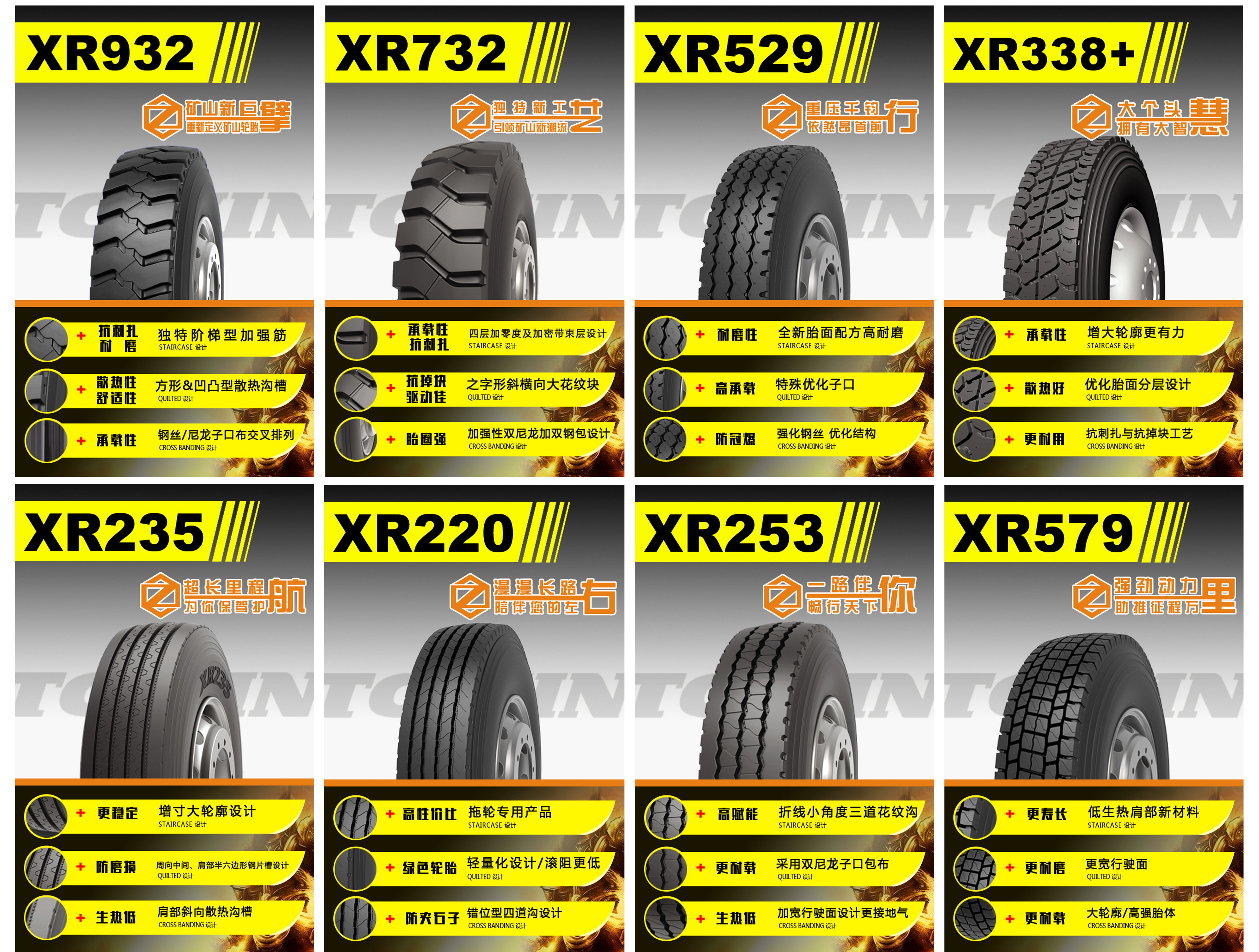 XR932具备独特的阶梯型加强筋设计,轮胎更抗刺扎、更耐磨,使用寿命更长,方形&凹凸型散热沟槽,有效增强轮胎散热性、舒适性,通过优化钢丝/尼龙子口布交叉排列,使轮胎具有卓越的承载性能。