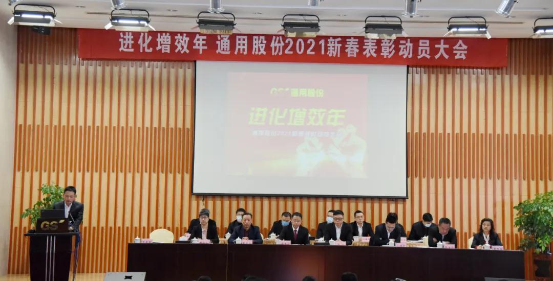 2月20日,通用股份隆重召开“进化增效年”2021新春表彰动员大会,深入总结了2020年的工作成果,同时对2021年各项工作进行了动员和部署。红豆集团董事局主席周海江、副主席龚新度、副总裁王晓军,通用股份董事长顾萃、联席总经理程金元、顾亚红,副总经理虞秀凤等领导出席了本次会议。