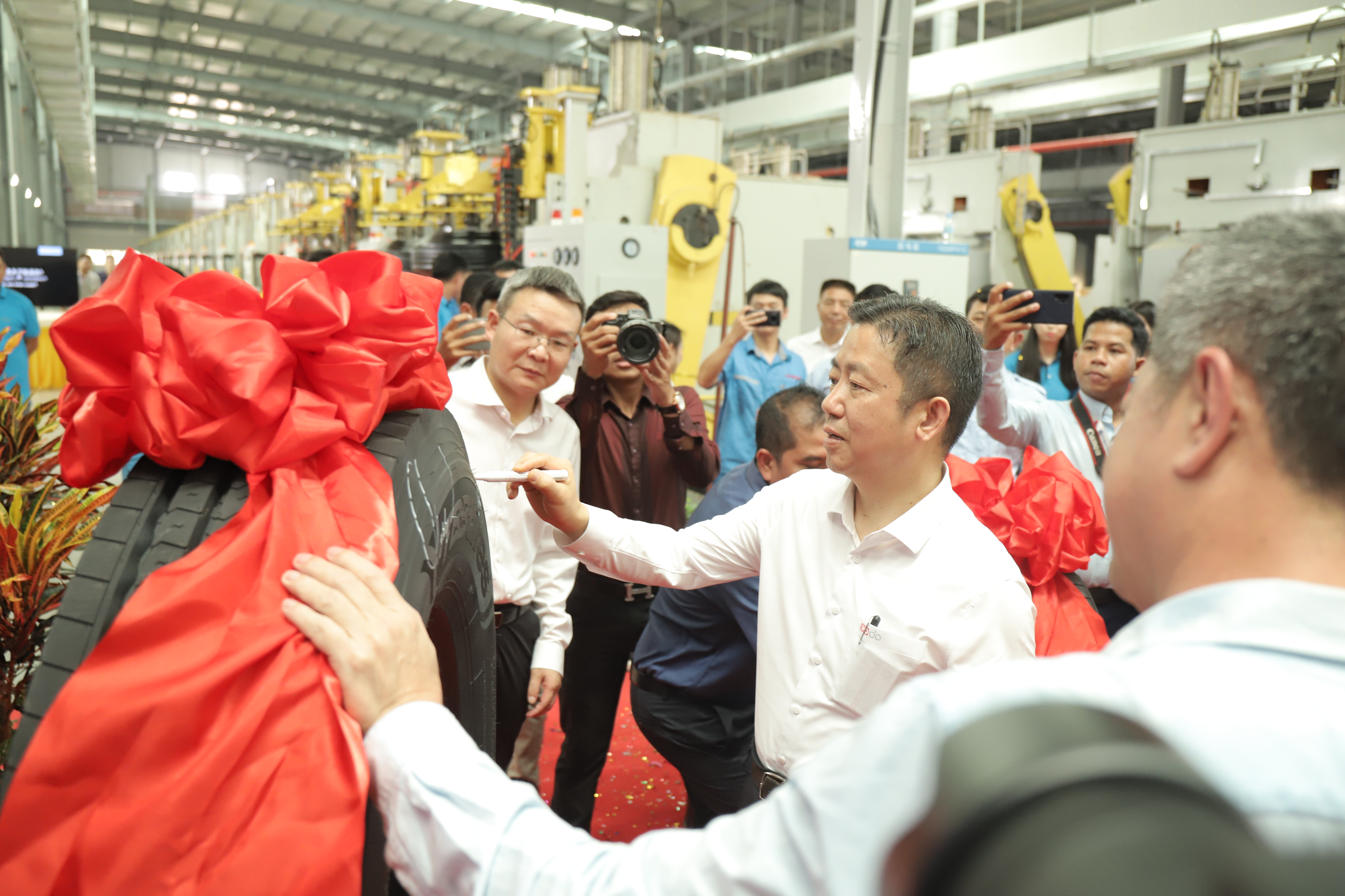 “5、4、3、2、1,出锅!.......”3月18日,在通用轮胎科技柬埔寨公司总经理陶国忠的倒数声中,柬埔寨工厂首胎成功下线,标志着通用股份海外“双基地”的正式建成、全面启航。在首胎下线仪式上,西哈努克省省长郭宗仁、乔治·布什美中关系基金会创始人兼主席尼尔·布什,中国民营经济国际合作商会会长、红豆集团董事局主席周海江,通用股份董事长顾萃等相关领导和全体员工共同见证了这一历史时刻。