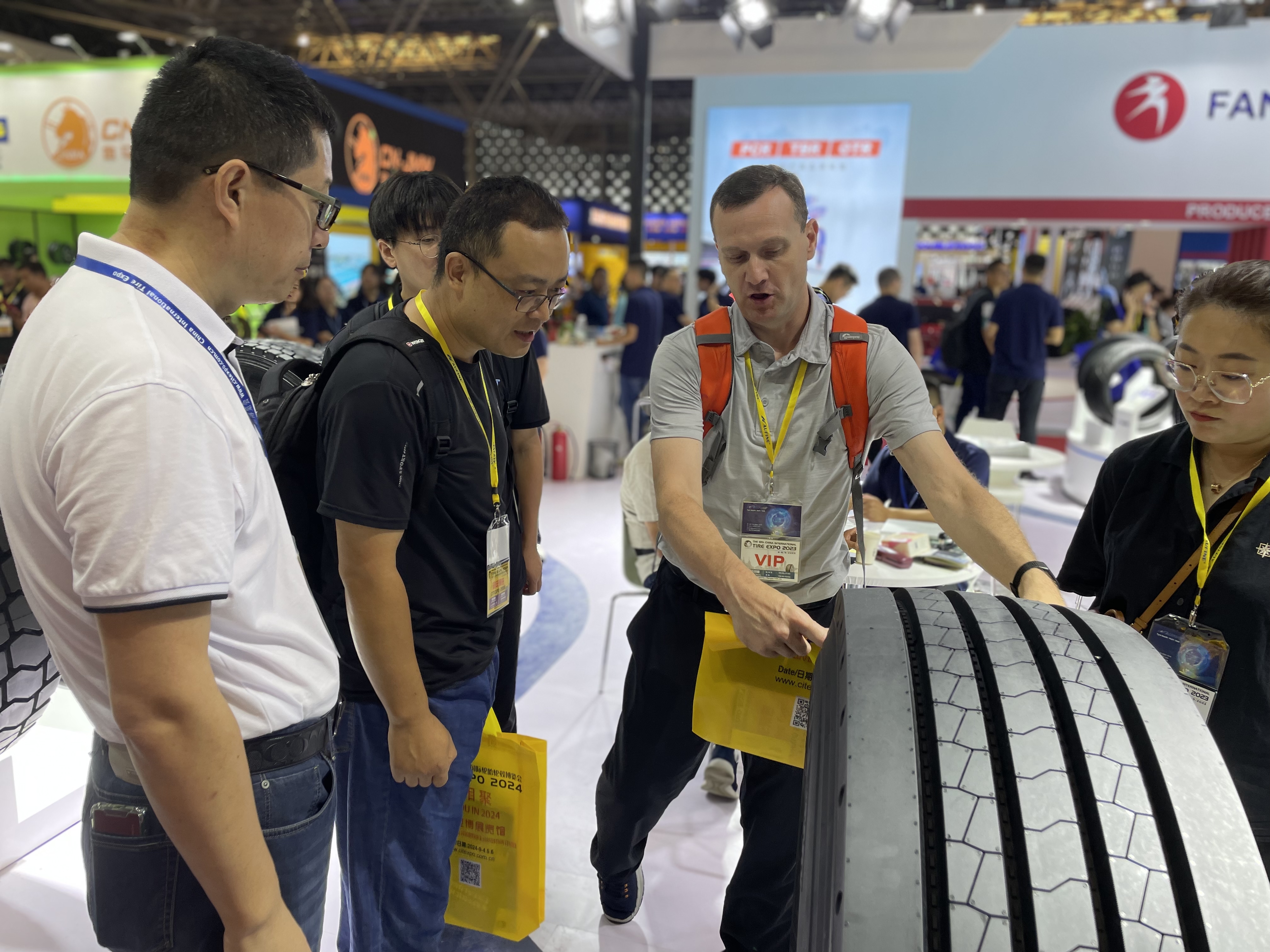 本次展会,通用股份展出了KTX816、CAT8、CM5等多个明星产品,涵盖中短途重载胎、工程胎、农业机械轮胎、新能源轮胎、摩托车轮胎等细分领域,通过现场产品展示与专业讲解,凭借独特的创新设计、稳定可靠的性能,通用股份展台前吸引众多国内外参展客商莅临参观、洽谈,现场人头涌动,气氛火爆。