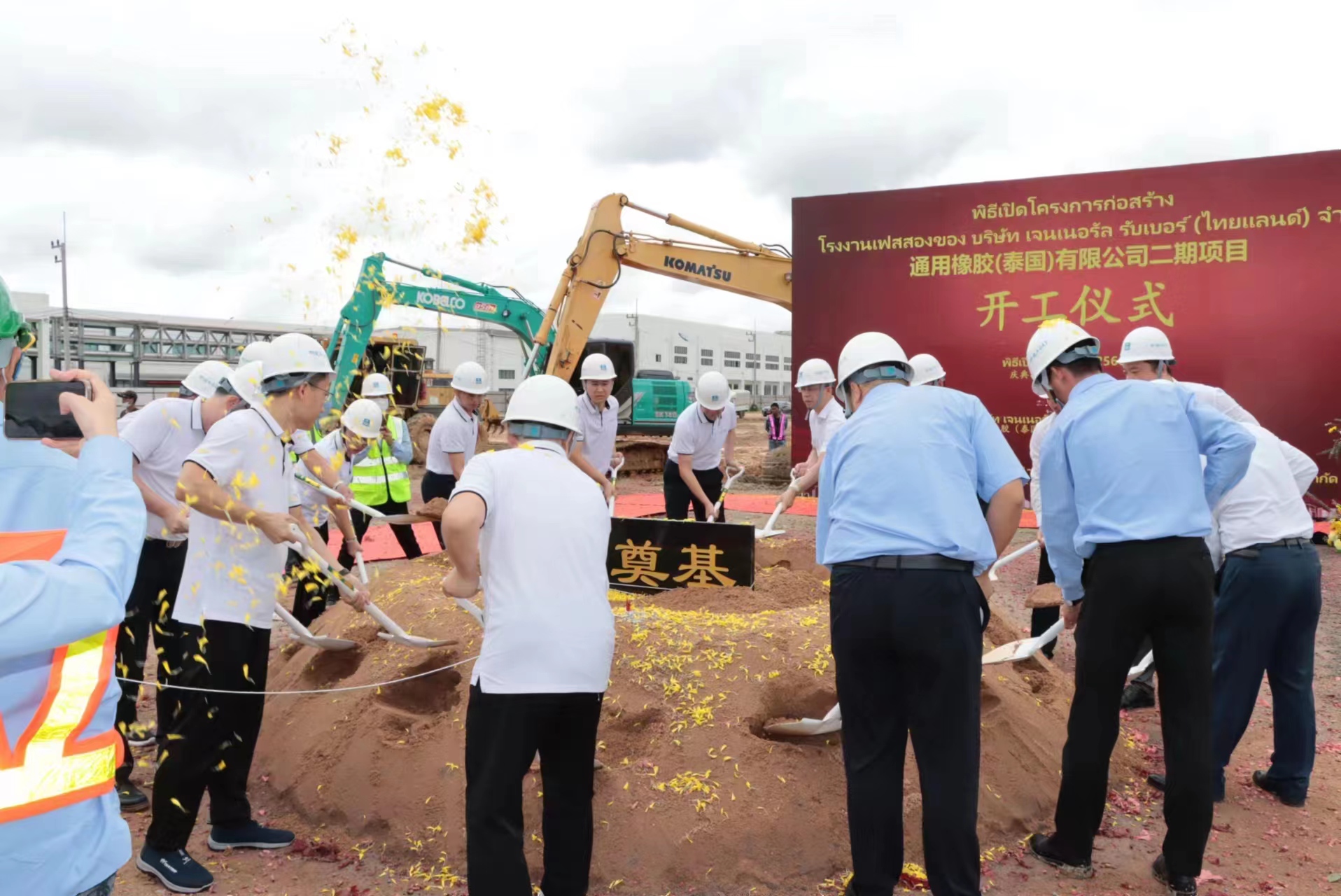 随着各位领导共同完成“第一铲土”,现场礼花满天、礼炮齐鸣,奠基仪式圆满落成,标志着通用橡胶泰国公司二期项目正式起航。