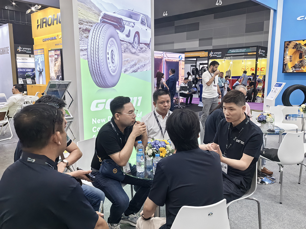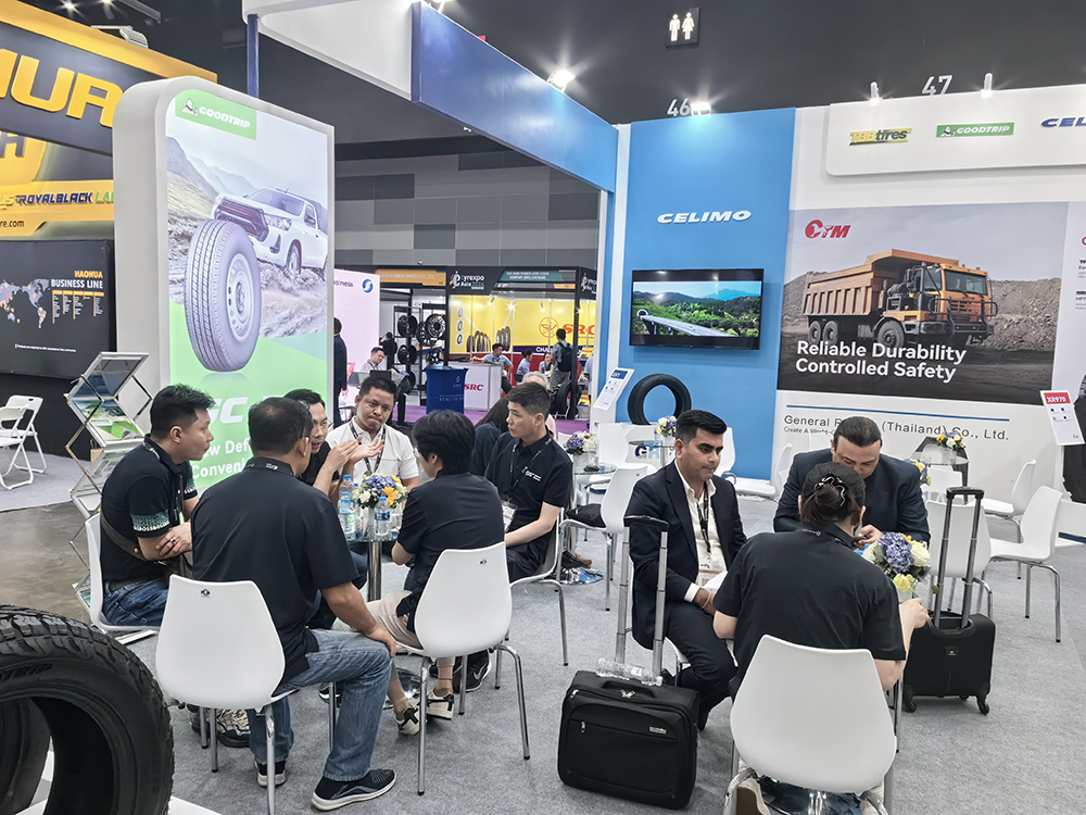 以巴西展为例,TBBTIRES品牌旗下中长途卡客车轮胎THA20、THD20以出色的耐磨性能备受关注;在乌兹别克斯坦,中长途承载胎KTX816凭借其高耐磨配方、独特的花纹设计和肩部低生热设计,在耐磨性、承载性和安全性方面表现突出;视线转到泰国轮胎展,通用股份展出了TR66、GS37、KTX747、半钢EV1、宽体自卸车轮胎XR970等明星产品,其中新能源EV1以其静音舒适性能广受好评;在越南,通用股份的展位同样人头攒动,采用国际先进水平杜仲胶配方技术的第二代产品XR290Y轮胎,有效解决了长距离行驶耐磨与生热高的痛点,成为展会焦点。