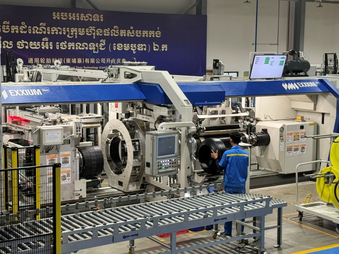 走进通用轮胎科技(柬埔寨)有限公司,目之所及都是智能化的生产设备,工厂内建有13个立体智能仓库,91个机器人。令人惊叹的是,从半部件到一条20寸的轮胎成型,仅需33秒的时间就完成了。该工厂自2023年5月正式开业以来,以打造智能化、自动化、信息化的现代化工厂为目标,推进智能制造和精益制造,仅一年时间,一期项目就实现了全面达产。如今,正在加快推进二期项目建设,一期、二期全部达产后,将具备年产850万条半钢子午胎和165万条全钢子午胎的生产能力。