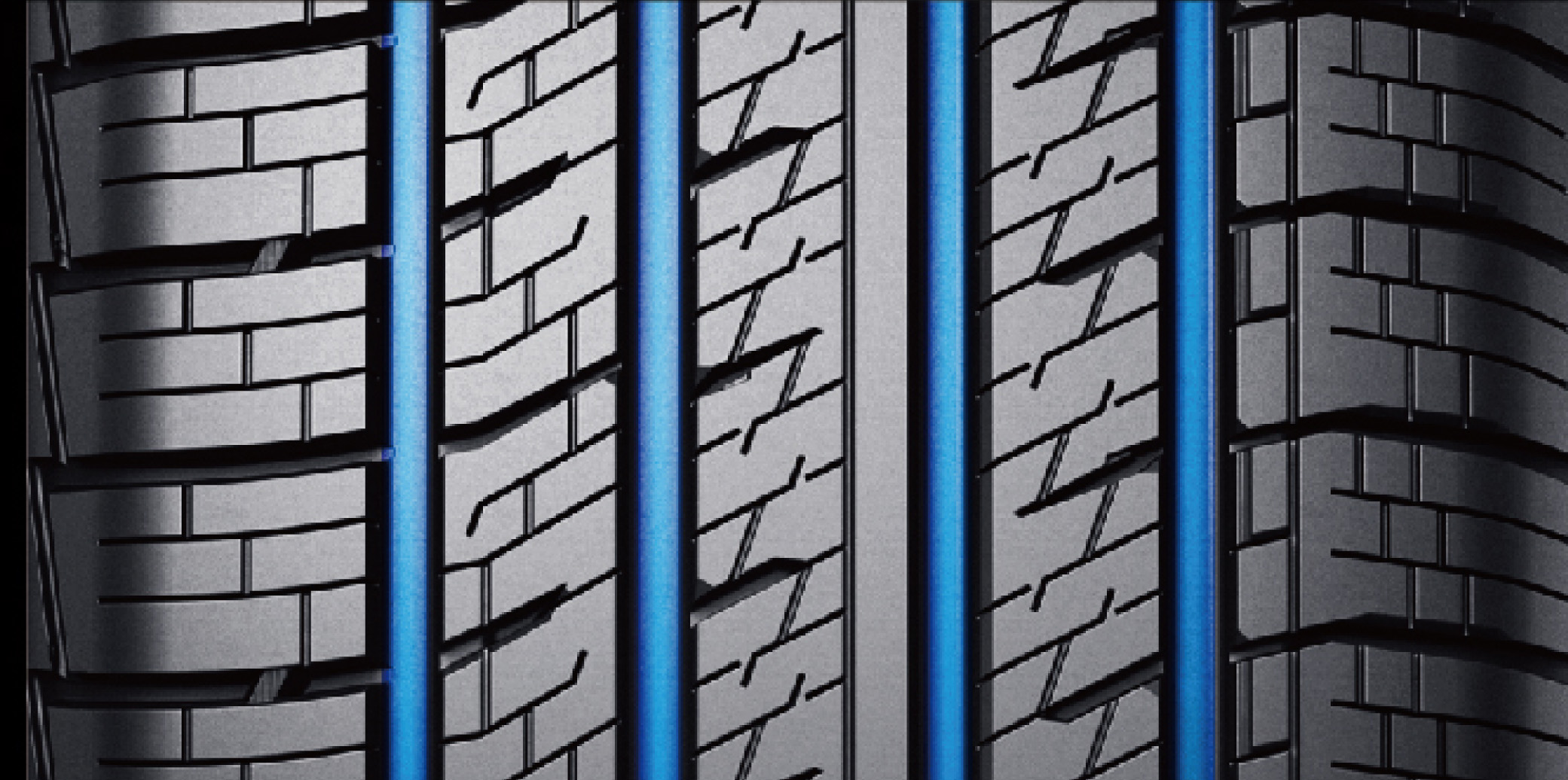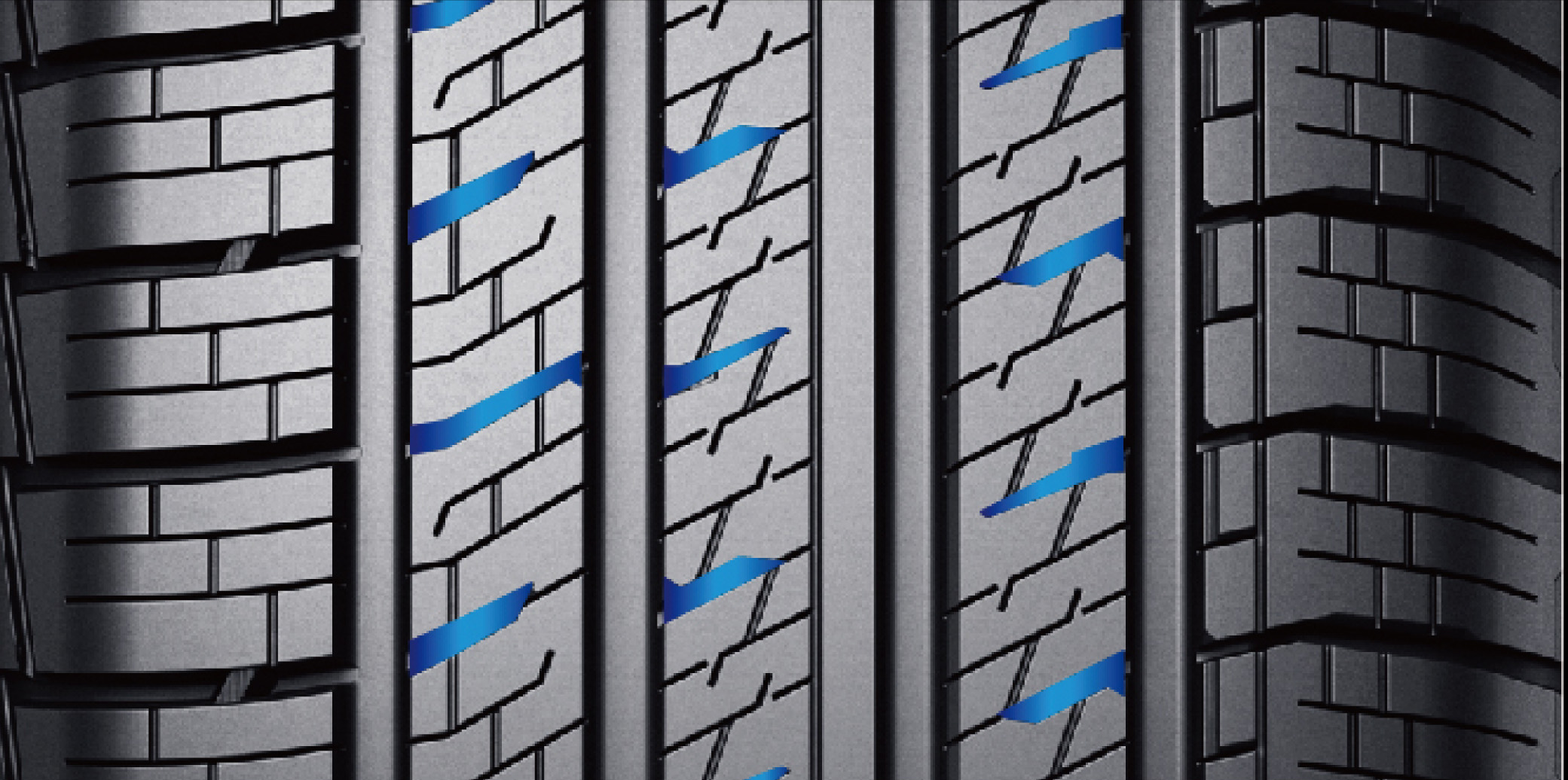 主沟与横向沟槽连续贯通,确保排水畅顺,即使在泥泞或积水的路面也能快速排出积水,减少轮胎的排水阻力。特别适合在雨雪天气或混合路面使用,能够显著提升轮胎的牵引性能和操控稳定性