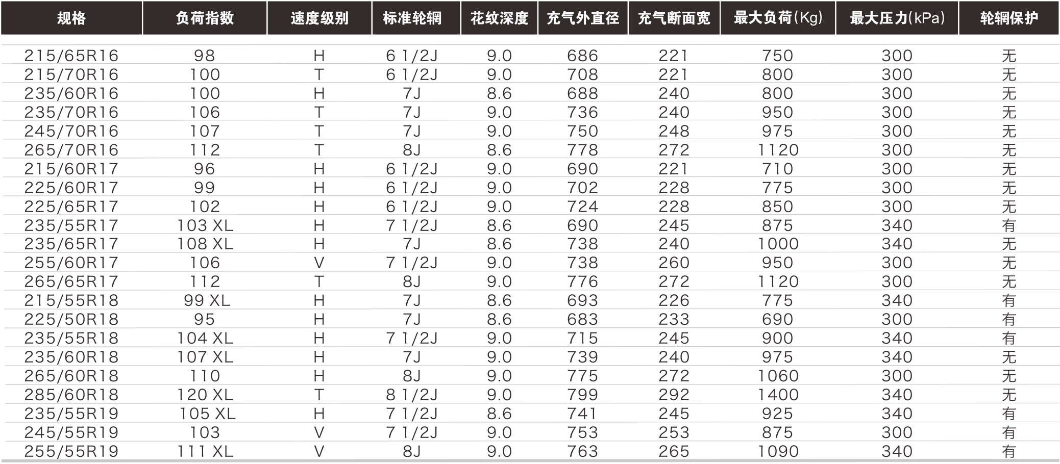 三条纵向排水沟有效防止轮胎雪地天气侧向打滑。