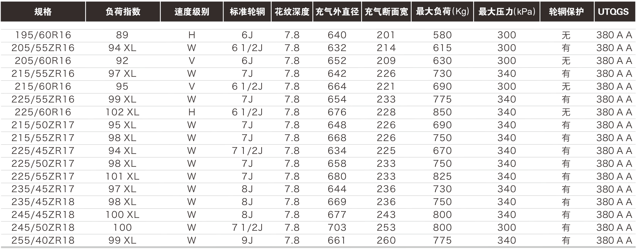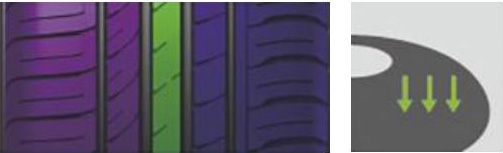胎面非对称的花纹设计,既确保了优异的弯道抓着力又分散了转向时产生的接地压力。