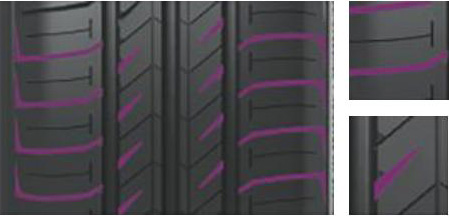 三条优化宽度的纵向排水沟保障了轮胎的湿地排水性能,有效防止了轮胎的侧向水滑。