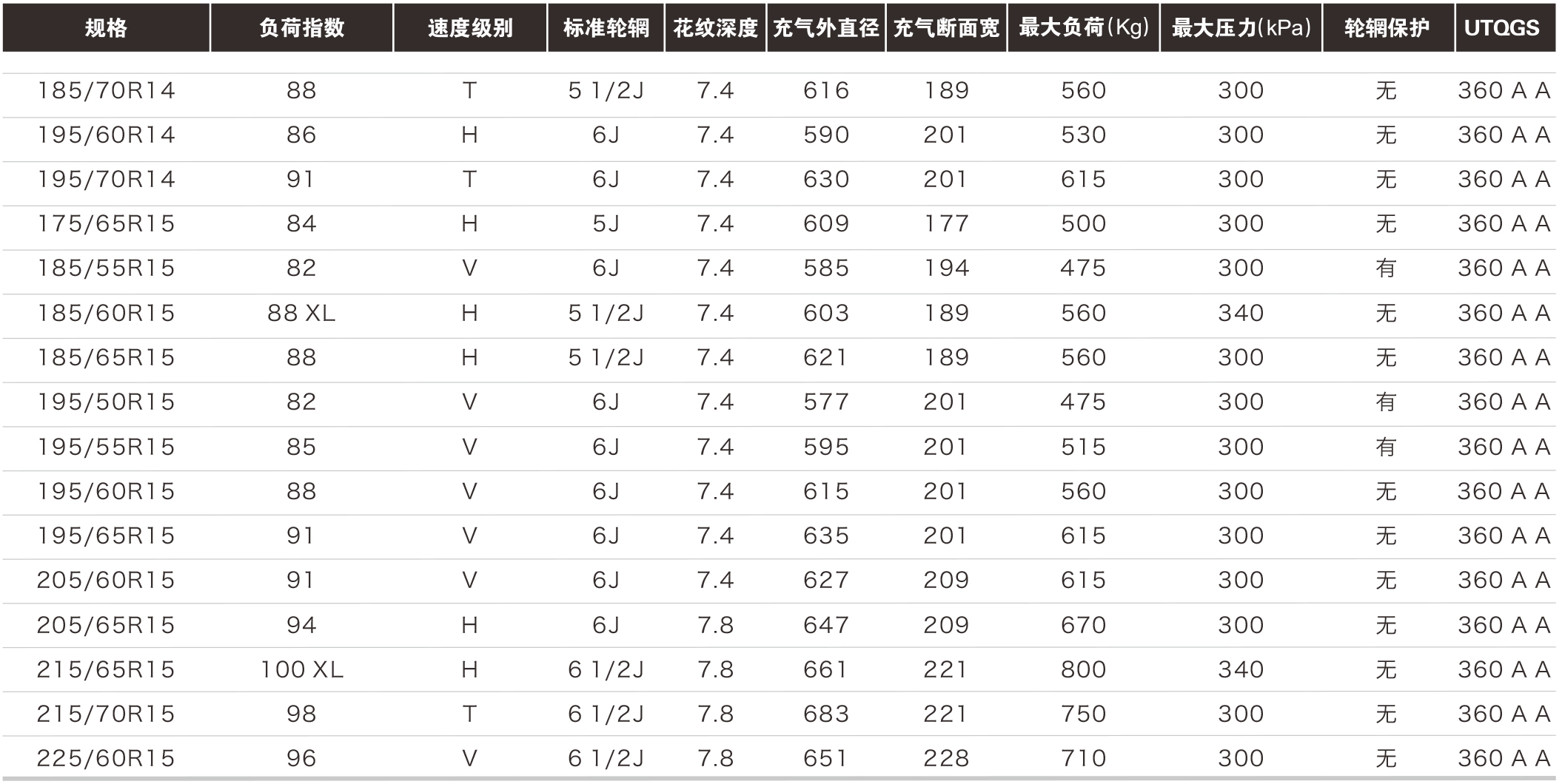 ·采用加宽的主沟设计,提开雨天行驶温滑路面的排水性能。
