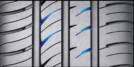 通过优化花纹块边缘的几何角度,减少刹车时花纹块的变形,确保胎面与地面的接触更加稳定。