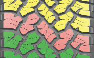 连贯的横向倾斜沟槽设计,在湿地路面有效排除职水,提供持续稳定的抓地力;