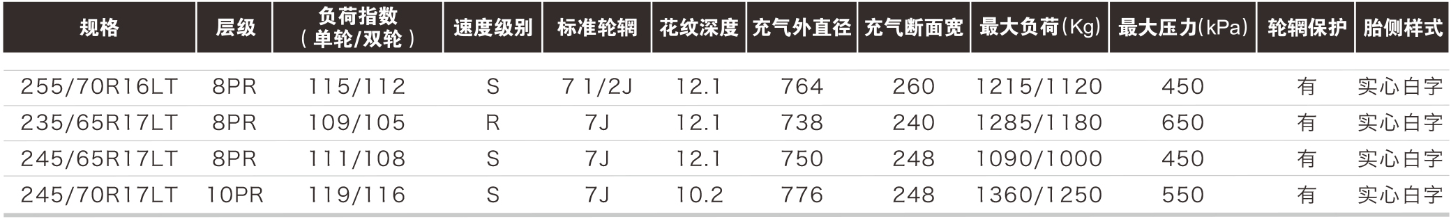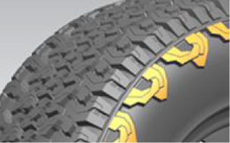 采用高耐磨橡胶和填充增强体系有效抵御恶劣路况行驶中的外部损伤,同时还能提高车辆泥地和沙地行驶的牵引性能。