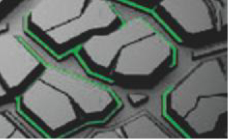 花纹块底部边缘增加花纹块增强结构,增强了花纹块的强度,提供更加有力的抓地性能。